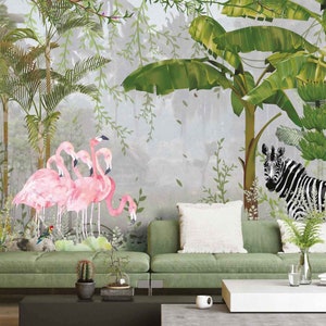 Safari wallpaper for kids, Giraffe mural for kids room, Tropical wallpaper for kids room
